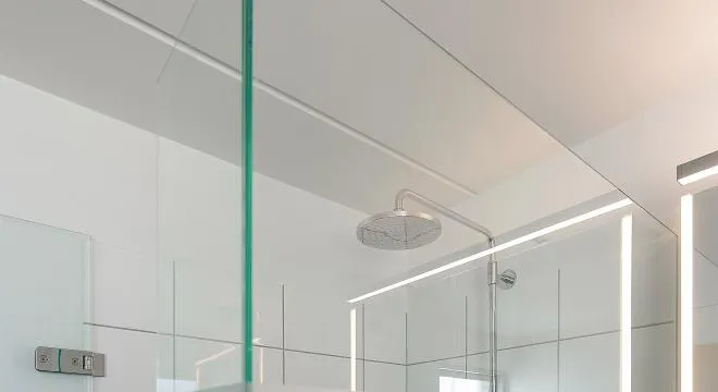 Der montering af blødgøringsanlæg samt Hans Grohe Select Shower bruser og brusedør.